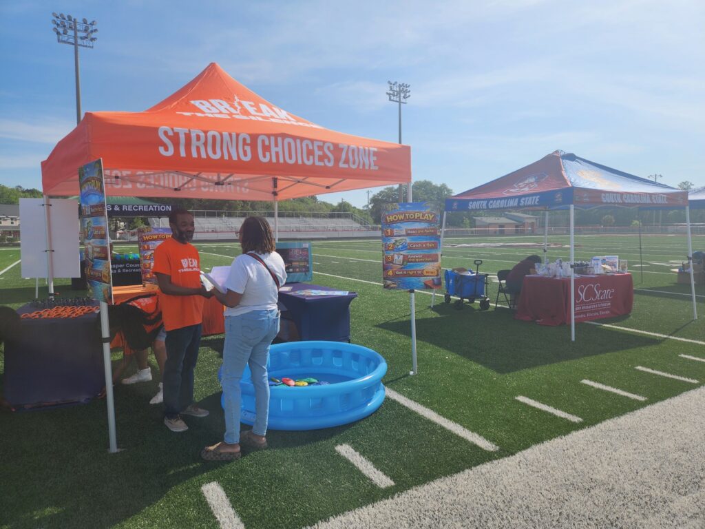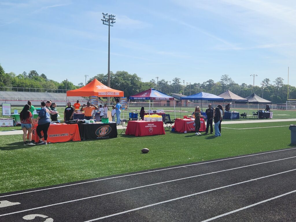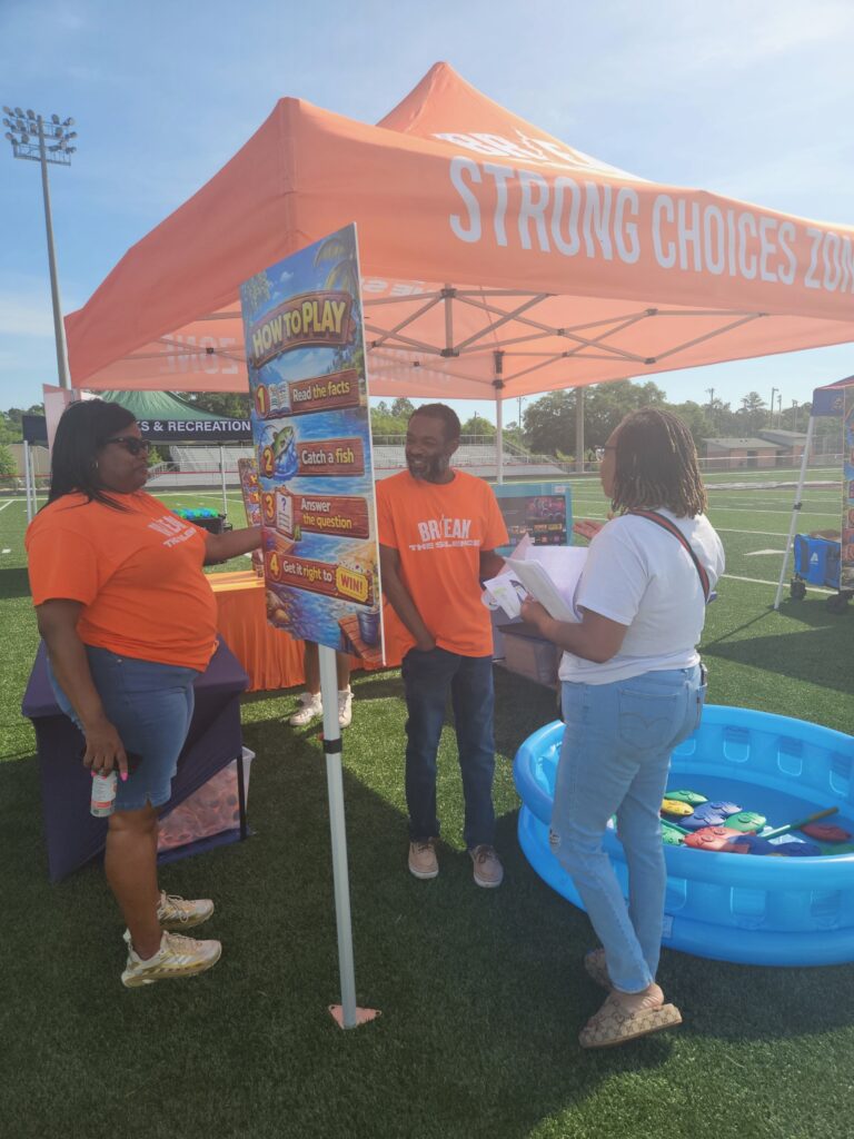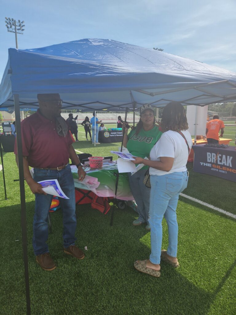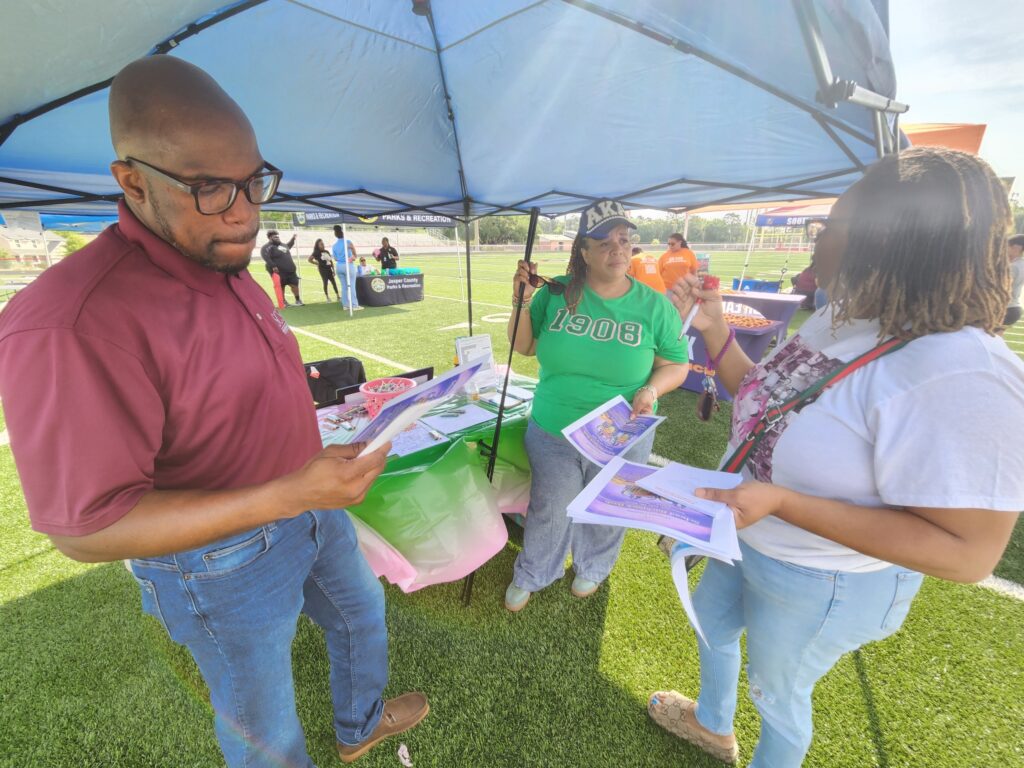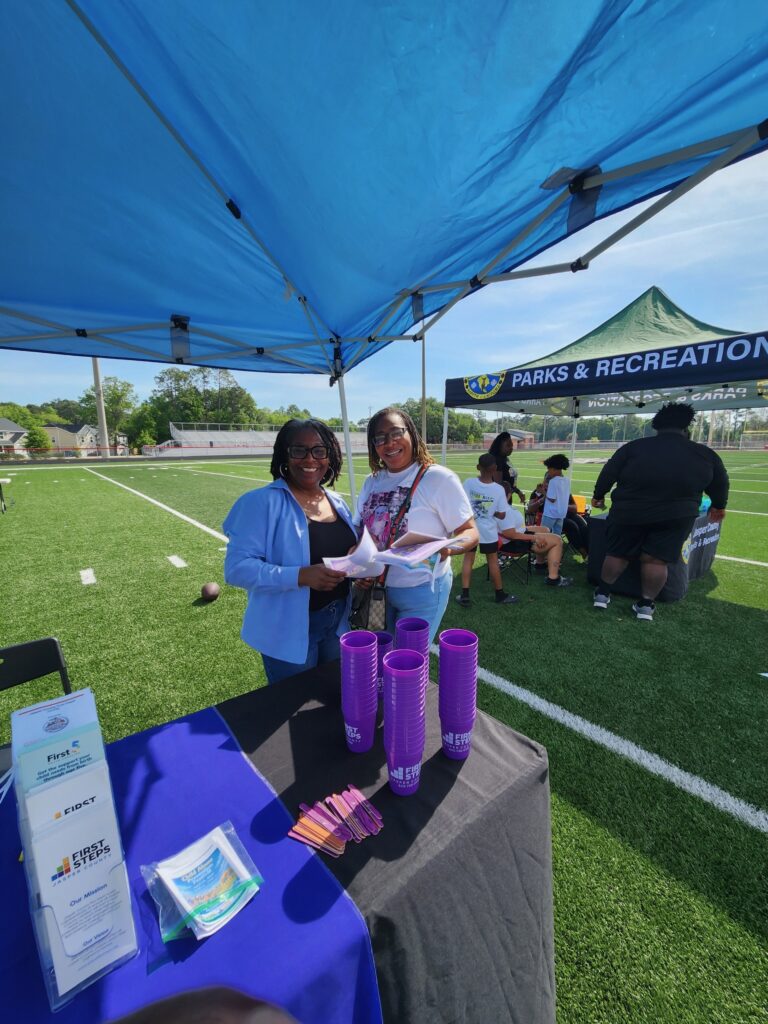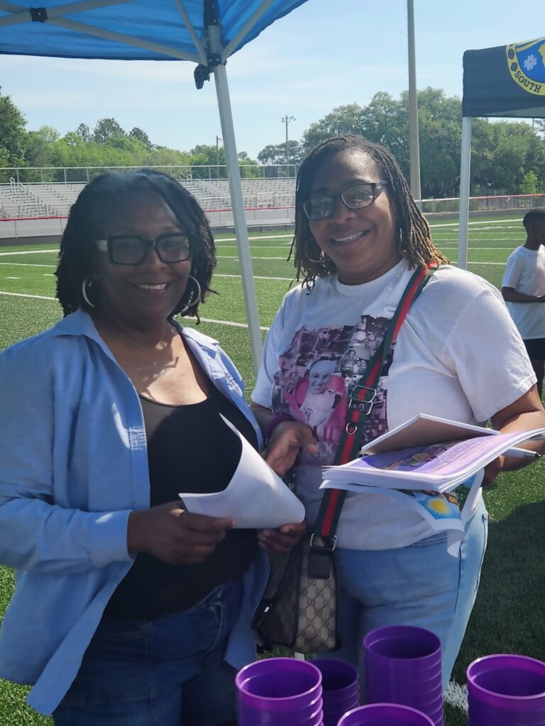 Quandra Stevenson and Sheilah Mervin at the Jasper Fest 4/18, bringing awareness about the foundation and its upcoming event as they passed out fliers for the Backpack Bash.